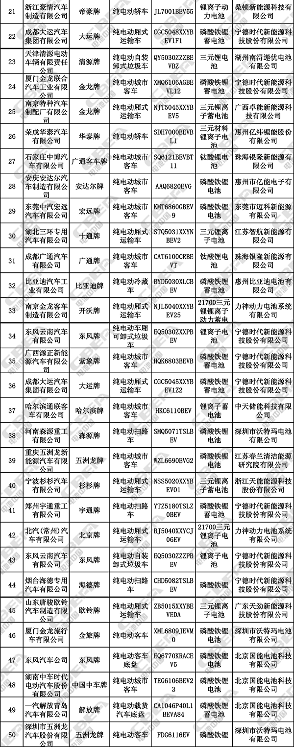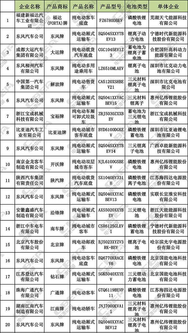 在本批公告中,力神生產(chǎn)的21700三元電池搭載了兩款純電動(dòng)運(yùn)輸車,標(biāo)志著我國(guó)21700電池開始新能源汽車上投入應(yīng)用。此外,不少新能源車企和電池企業(yè)開始發(fā)力,既體現(xiàn)在所申報(bào)的純電動(dòng)車型以及動(dòng)力電池企業(yè)所配套的純電動(dòng)車型明顯增多,又體現(xiàn)在本批公告所出現(xiàn)的新面孔。我們對(duì)本批公告的車型及配套電池信息進(jìn)行了統(tǒng)計(jì),總結(jié)有幾大亮點(diǎn):