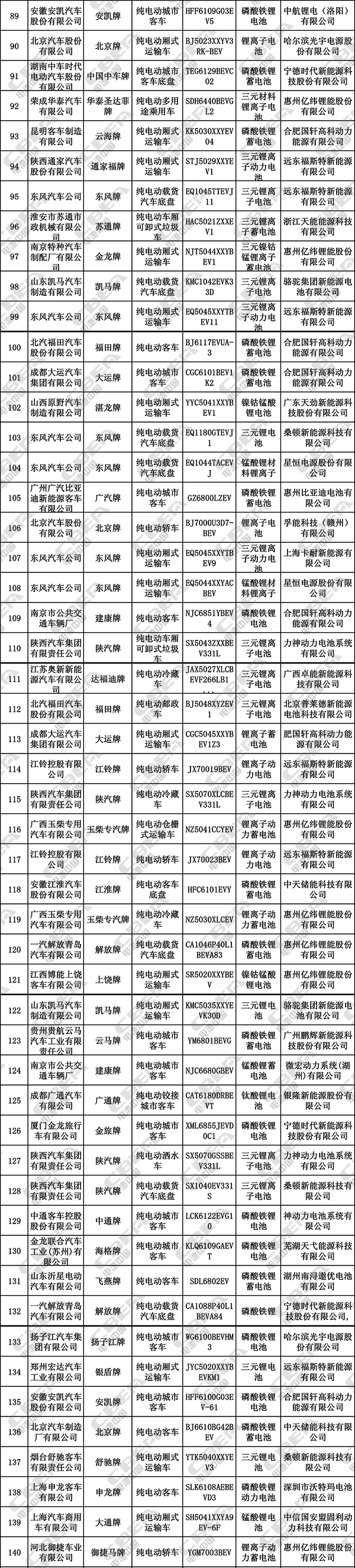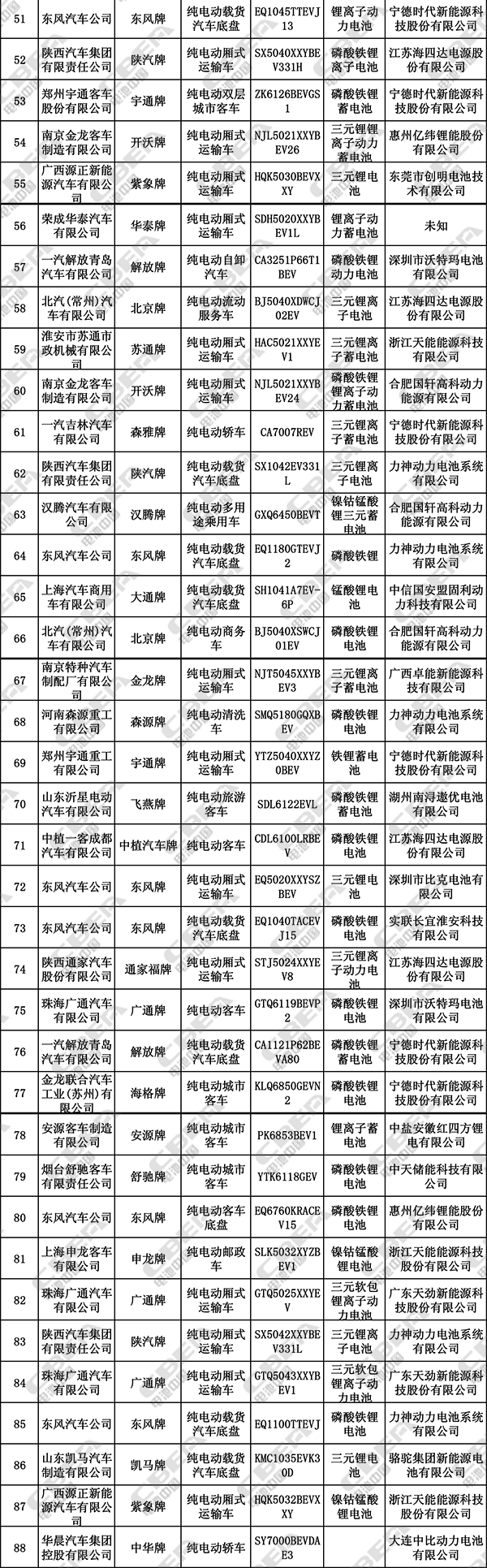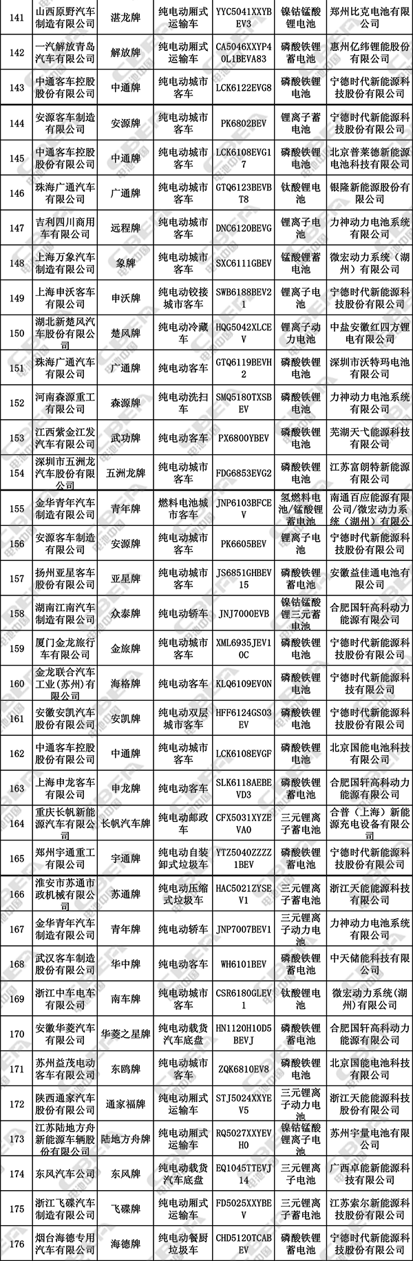 在本批公告142款純電動(dòng)專用車中,三元鋰電池有79款,占比55.6%;磷酸鐵鋰電池41款,占比28.9%;錳酸鋰電池僅4款。在前7批目錄中,純電動(dòng)專用車共570款,其中,415款裝配三元鋰電池,108款裝配磷酸鐵鋰電池,23款裝配錳酸鋰電池,24款裝配未知鋰離子電池。從本批公告以及前7批推薦目錄可見,三元、磷酸鐵鋰和錳酸鋰電池在純電動(dòng)專用車市場(chǎng)的地位基本沒(méi)有變化。