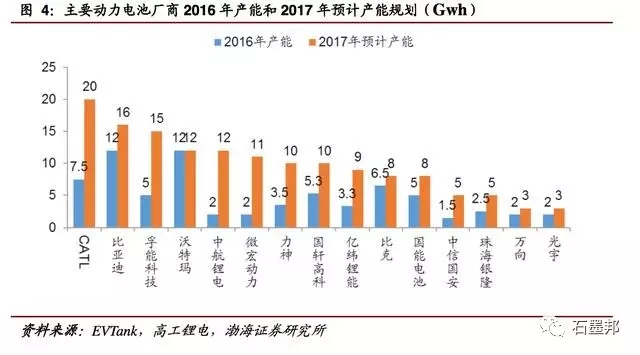 上述兩個(gè)政策明確的指出了產(chǎn)業(yè)發(fā)展的方向,擴(kuò)大優(yōu)質(zhì)產(chǎn)能規(guī)模,形成規(guī)模效應(yīng),進(jìn)一步降低生產(chǎn)成本。各大廠商早在 15 年就開始紛紛進(jìn)行產(chǎn)能擴(kuò)張,2016 年國內(nèi)動力電池有效產(chǎn)能約為 60Gwh,若 2017 年各企業(yè)的產(chǎn)能規(guī)劃能夠達(dá)產(chǎn),我們認(rèn)為 17 年的有效產(chǎn)能在 100Gwh 以上。而根據(jù) 2017 年 70 萬輛新能源汽車銷量的預(yù)測,我們預(yù)計(jì) 2017 年的需求為 36.58Gwh,行業(yè) 17 年面臨產(chǎn)能過剩、競爭激烈的局面。