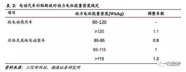 此外,本次新能源車的補(bǔ)貼政策設(shè)臵動力電池的能量密度門檻,根據(jù)電池的能量密度確定補(bǔ)貼幅度,純電動乘用車動力電池系統(tǒng)的質(zhì)量能量密度不低于 90Wh/kg,對高于 120Wh/kg 的按 1.1 倍給予補(bǔ)貼;非快充類純電動客車電池系統(tǒng)能量密度要高于 85Wh/kg,系統(tǒng)能量密度高于 115Wh/kg 的給予 1.2 倍補(bǔ)貼;專用車裝載動力電池系統(tǒng)質(zhì)量能量密度不低于 90Wh/kg。政策的進(jìn)一步推動使高能量密度的三元電池優(yōu)勢更突出。