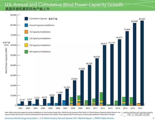 這一容量來自于安裝在美國50個州,哥倫比亞特區(qū),關(guān)島,波多黎各和美屬維爾京群島的大約77,000渦輪機。