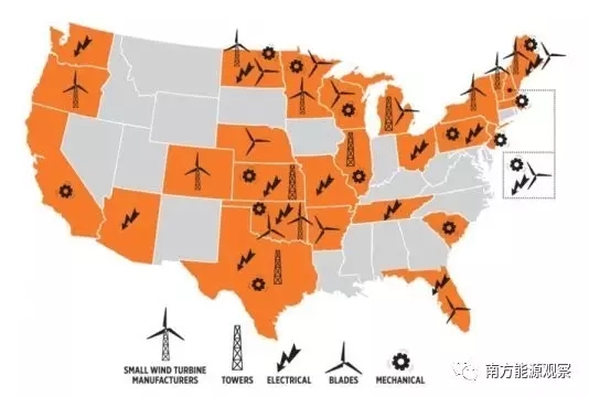 美國有27個州是生產(chǎn)各種小型風(fēng)力渦輪機組件的所在地