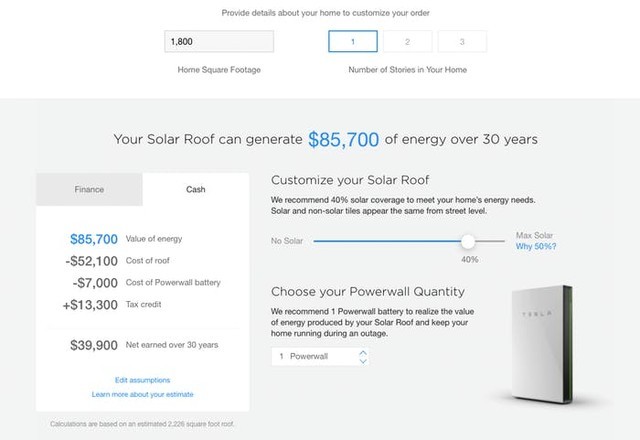 Inverse網(wǎng)站用特斯拉在線計(jì)算器計(jì)算得出,在房屋壽命30年內(nèi),太陽(yáng)能屋頂為這棟房子產(chǎn)生的能量?jī)r(jià)值近8萬(wàn)6千美元。
