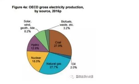 整體而言,2016年化石能源占經(jīng)合組織國(guó)家發(fā)電比例高達(dá)57.6%,其中煤電依然占27.7%,依然是最大的發(fā)電來(lái)源。