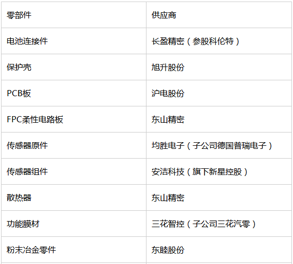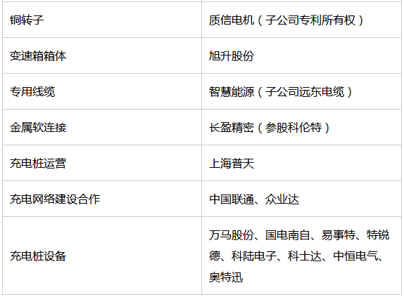 在充電系統(tǒng)中,高壓動(dòng)力總成高壓直流繼電器中國公司宏發(fā)股份作為第二供貨商供貨;充電線專用線纜由中國公司智慧能源子公司遠(yuǎn)東電纜提供;充電槍金屬軟連接由中國公司長盈精密參股公司科倫特提供。