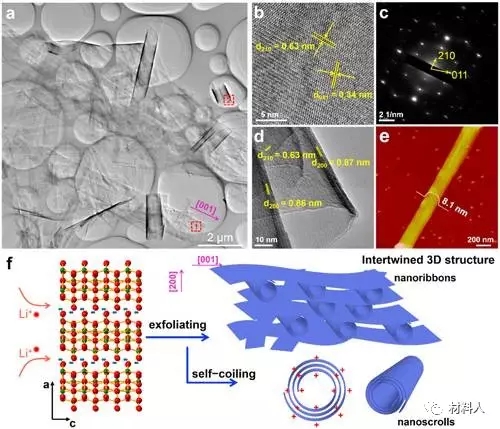 圖三 H2V3O8水凝膠的TEM,晶體結(jié)構(gòu)分析,水凝膠的結(jié)構(gòu)形成示意圖