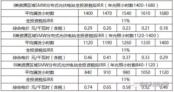 以此模型假設(shè)為基礎(chǔ)倒推I、II、III類資源區(qū)域滿足收益率時綜合電價,結(jié)果見下表。注意,尖峰平谷時間段、電價、自用比例對自發(fā)自用項目收益率影響嚴(yán)重。對于自發(fā)自用項目,綜合電價直接影響項目現(xiàn)金流,即使?jié)M足投資收益要求,建議不低于0.65元/千瓦時。重點關(guān)注大工業(yè)用電及商業(yè)用電電價較高區(qū)域。