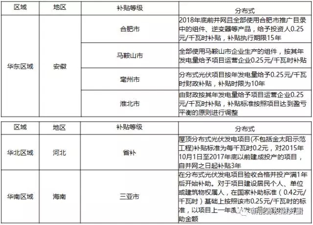 通過查詢?nèi)珖惺∈锌h光伏補(bǔ)貼政策,并加上補(bǔ)貼測算收益率,可以看出部分省市縣加上補(bǔ)貼可以滿足全額上網(wǎng)類項目投資收益率。加上補(bǔ)貼政策滿足收益率的補(bǔ)貼政策見下表。