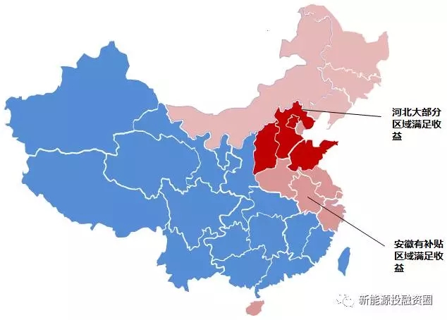 通過查詢各省市的資源情況可以選出下半年全額上網(wǎng)項目仍然滿足收益率的地區(qū),見下表。
