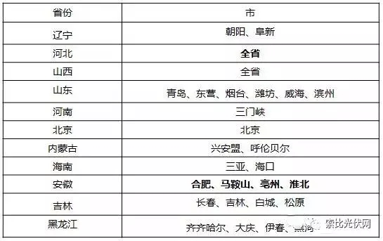 通過查詢各省市的資源情況可以選出下半年全額上網(wǎng)項目仍然滿足收益率的地區(qū),見下表。