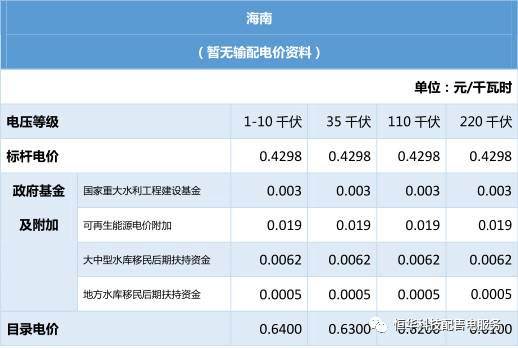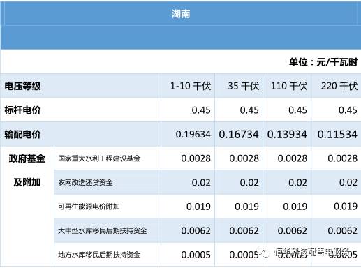 全國電價(jià)匯總:中南區(qū)域