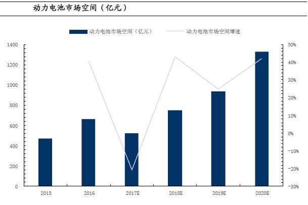 動(dòng)力電池:需求穩(wěn)增成本下降,17-20市場空間復(fù)合增速約33%