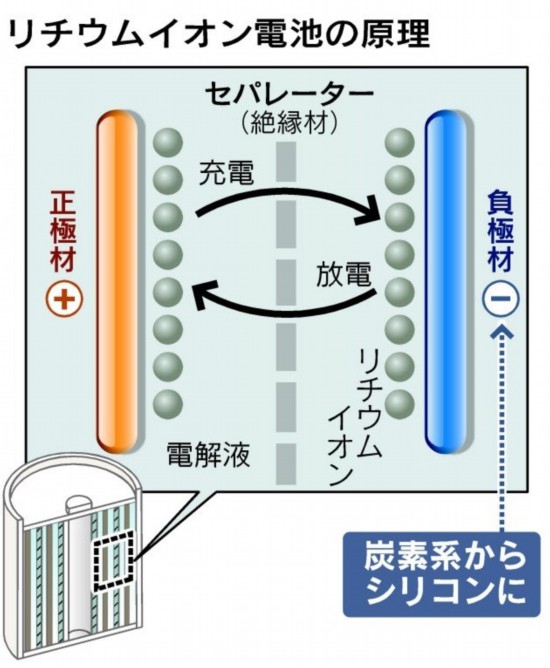 中國儲(chǔ)能網(wǎng)訊:據(jù)《日本經(jīng)濟(jì)新聞》8月1日?qǐng)?bào)道,日本信越化學(xué)工業(yè)目前宣布已經(jīng)成功開發(fā)出一種智能手機(jī)、電動(dòng)汽車(EV)使用的鋰離子充電電池新材料,該材料不但可以縮減電池體積,最重要的是能夠?qū)囯x子電池電量提升10倍,預(yù)計(jì)將在3至4年后量產(chǎn),主要供應(yīng)給日本國內(nèi)外電池廠商。