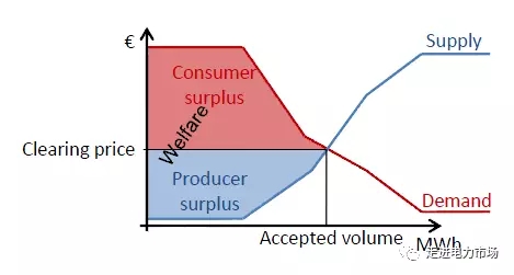 在耦合的電力市場(chǎng)中,各市場(chǎng)成員在其所屬的交易所報(bào)價(jià),然后由PCR統(tǒng)一出清。出清的基本原則不變,仍然是按供給曲線和需求曲線的交點(diǎn)出清,如圖1所示。