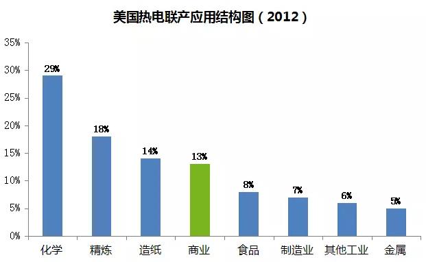 根據(jù)2012年美國熱電聯(lián)產(chǎn)安裝數(shù)據(jù)庫的統(tǒng)計,截止2012年底,美國工業(yè)和商業(yè)場所安裝的熱電聯(lián)產(chǎn)項目約4,200個,總裝機容量82.4GW。其中,工業(yè)領(lǐng)域的裝機容量占87%,有71%的熱電聯(lián)產(chǎn)項目以天然氣作為燃料。