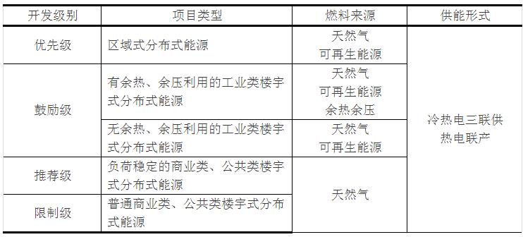 總體上,各級別分布式能源項目都要優(yōu)先選擇冷熱電三聯(lián)供,使能源利用效率最大化。不具備供冷條件或不需要供冷的,鼓勵建設(shè)熱電聯(lián)產(chǎn)項目。一般情況下,不建議開發(fā)電力單供的分布式能源項目。