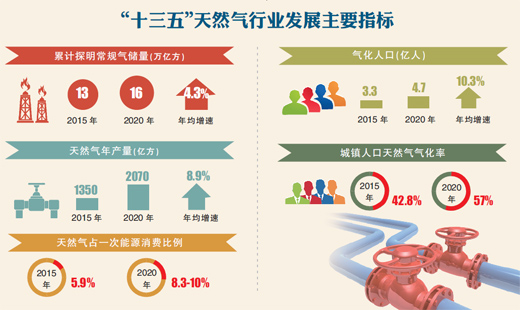 “當(dāng)今世界一次能源消費比重當(dāng)中,石油約占33%,天然氣約占24%,核電和新能源約占15%。相比較而言,2016年我國石油、天然氣、核電和新能源占一次能源的消費比重分別約為18.3%、6.4%和13.3%,其中差距最大的是天然氣,同樣發(fā)展?jié)摿ψ畲蟮囊彩翘烊粴?。”努爾·白克力進(jìn)一步指出,中國目前約有13.7億人口,按照2016年2100億方天然氣消費總量測算,涵蓋的用氣總?cè)丝诩s4億多,“現(xiàn)在我們的天然氣供應(yīng)只能滿足全國三分之一人口的需求,還有三分之二的市場需要開拓。”