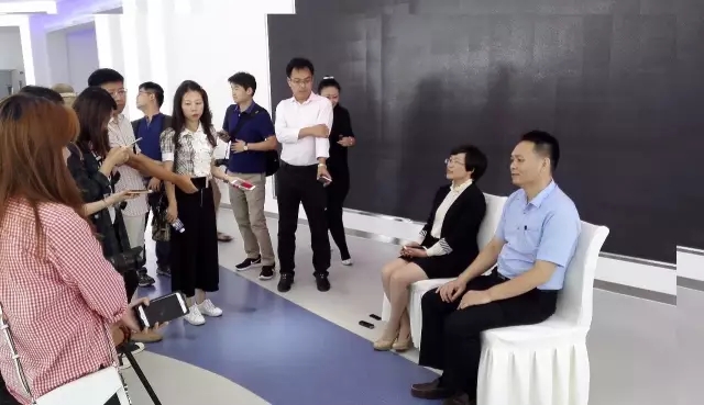 圖為李建秋(右一)與億華通張家口生產(chǎn)基地總經(jīng)理孫海英(右二)在接受媒體采訪