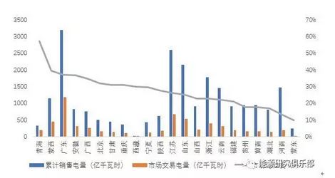 圖2 上半年分省交易電量及銷售電量市場化率圖
