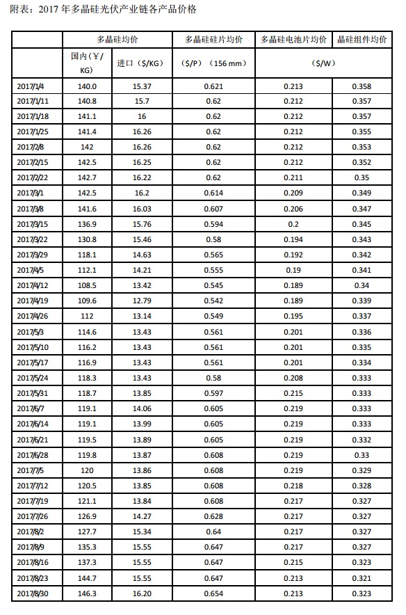 圖1 2017年1月-2017年8月國內(nèi)多晶硅現(xiàn)貨價格 來源:硅業(yè)分會