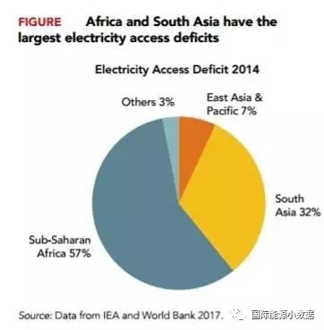 按照地區(qū)分布來看,在10.6億無電人口中,撒哈拉以南的非洲國(guó)家占57%(6.09億人)、南亞占32%(3.43億人)、東亞及太平洋占7%,拉美地區(qū)占3%。撒哈拉以南非洲國(guó)家的通電率僅為37.6%,南亞國(guó)家達(dá)到80%。