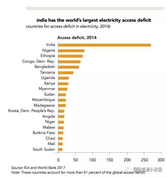 如果按國(guó)別來看,在10.6億無電人口中,印度一國(guó)就有2.70億人;其次是尼日利亞(7500萬人)、埃塞俄比亞(7100萬人)。