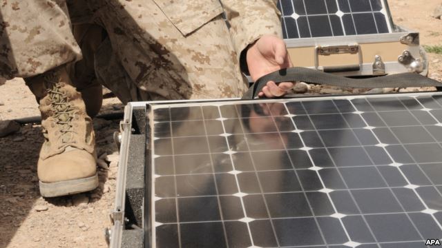 海軍陸戰(zhàn)隊(duì)少校內(nèi)森•羅伯斯(Nathan Roberts)希望遠(yuǎn)程太陽(yáng)能系統(tǒng)能減少軍人的傷亡。“利用綠色能源技術(shù)和降低傳統(tǒng)能源的消耗意味著你可以派遣較少的海軍陸戰(zhàn)隊(duì)員去保護(hù)你的軍用物資。”