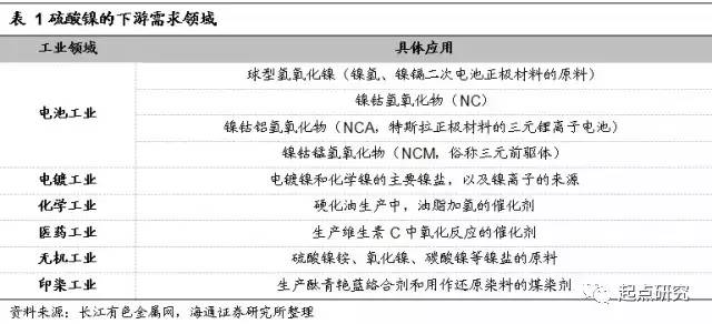 1.鎳新的需求增長點:電池領(lǐng)域主要原料硫酸鎳概述