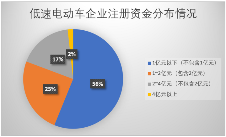 第一電動(dòng)研究院統(tǒng)計(jì)了業(yè)內(nèi)具有一定規(guī)模的低速電動(dòng)車(chē)企業(yè),選取了58家樣本企業(yè),其中有效樣本內(nèi)注冊(cè)資金在1億元以下(不包含1億元)的企業(yè)占比56%,1~2億元區(qū)間占比25%,2億元以上(不包含2億元)的企業(yè)僅占19%。