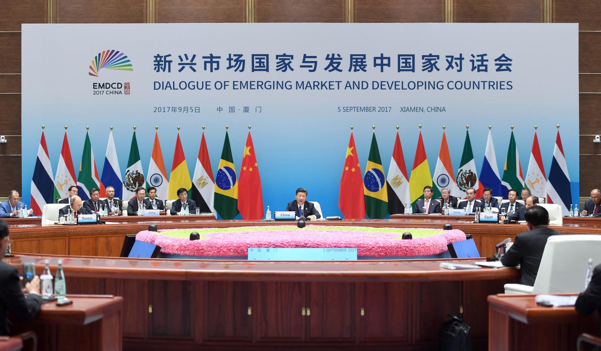 9月5日,國家主席習近平在廈門主持新興市場國家與發(fā)展中國家對話會并發(fā)表重要講話。來源:新華社