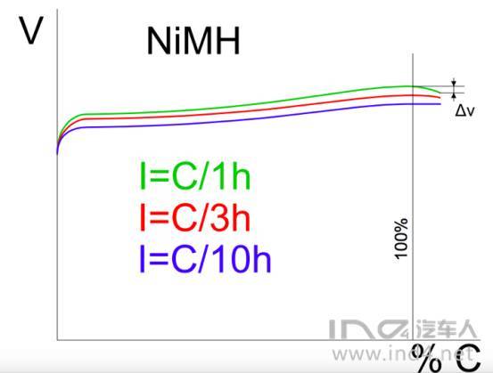 鎳氫電池在1C的倍率下充電還有一個(gè)有意思的現(xiàn)象,當(dāng)電池快被充滿時(shí),電池電壓會(huì)有一個(gè)小幅的下降(5~10mV)。必要時(shí)可以通過(guò)這個(gè)特性來(lái)識(shí)別電池是否滿電。