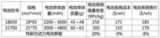 特斯拉推出21700電池并非是想引領(lǐng)技術(shù)方向,實際是迫于成本壓力。