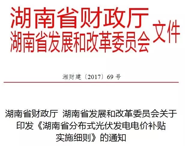 湖南省分布式光伏發(fā)電電價補貼實施細則