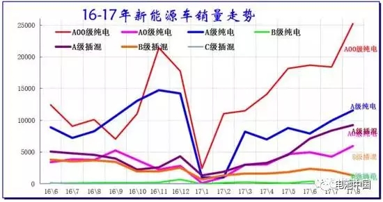 這兩年,A00級(jí)純電動(dòng)乘用車的表現(xiàn)特別搶眼,盡管在2017年初受補(bǔ)貼政策變動(dòng)以及推薦目錄重審的影響,銷量與其他新能源車一樣嚴(yán)重下滑,但這根本阻擋不了A00級(jí)純電動(dòng)車的一騎絕塵之勢(shì)。