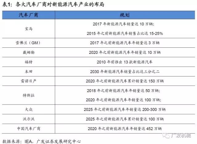 全球各大汽車廠商都在規(guī)劃新能源汽車產(chǎn)業(yè)。面對新能源汽車的高速發(fā)展,全球各個汽車廠家各自發(fā)布了雄心勃勃的新能源汽車計劃。根據(jù)IEA披露的各大汽車廠商對新能源汽車產(chǎn)業(yè)的規(guī)劃,到2020年,全球新能源汽車的保有量會達到900-2000萬輛。