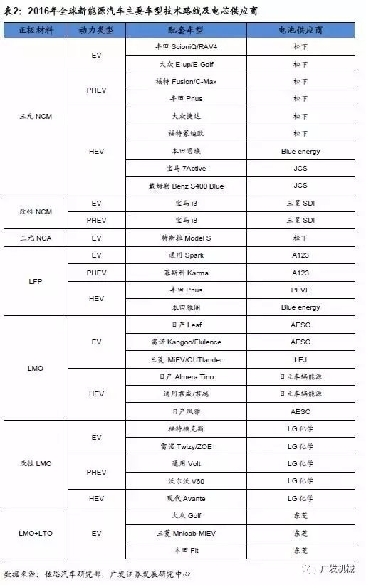 根據(jù)BloombergNewEnergyFinace 的統(tǒng)計,2017年第一季度,全球鋰電池出貨量(僅為混合動力汽車和純電動汽車用電池)為5273MWh,其中松下占比最多,為42%。2016年全球主流新能源汽車采用的正極材料主要有三元NCM、改性NCM、三元NCA、改性LMO等,主流的電池供應(yīng)商有松下、三星SDI、LG化學(xué)等。汽車企業(yè)與鋰電廠商的合作日益密切,綁定關(guān)系逐漸成型。鋰電池行業(yè)龍頭企業(yè)擴產(chǎn)規(guī)劃明確。在市場及各國政策的雙重驅(qū)動下,一線動力電池廠商持續(xù)擴產(chǎn)。