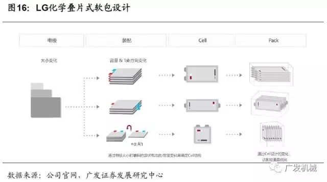 在技術(shù)上,LG化學(xué)正極采用的主要是三元NCM材料,在電池包裝方面,LG化學(xué)大部分采用疊片式軟包設(shè)計,是海內(nèi)外公認(rèn)的軟包龍頭企業(yè)。軟包鋰電池所用的關(guān)鍵材料—正極材料、負極材料及隔膜—與傳統(tǒng)的鋼殼、鋁殼鋰電池之間的區(qū)別不大,最大的不同之處在于軟包裝材料(鋁塑復(fù)合膜),這是軟包鋰電池中最關(guān)鍵、技術(shù)難度最高的材料。軟包電池的包裝材料和結(jié)構(gòu)使其擁有一系列優(yōu)勢。1)安全性能好,軟包電池在結(jié)構(gòu)上采用鋁塑膜包裝,發(fā)生安全問題時,軟包電池一般會鼓氣裂開,不會爆炸。2)重量輕,軟包電池重量較同等容量的鋼殼鋰電池輕40%,較鋁殼鋰電池輕20%。3)內(nèi)阻小,軟包電池的內(nèi)阻較鋰電池小,可以極大的降低電池的自耗電。4)循環(huán)性能好,軟包電池的循環(huán)壽命更長,100次循環(huán)衰減比鋁殼少4%~7%。5)設(shè)計靈活,外形可變?nèi)我庑螤?,可以更薄,可根?jù)客戶的需求定制,開發(fā)新的電芯型號。軟包電池的不足之處是一致性較差,成本較高,容易發(fā)生漏液,技術(shù)門檻高。