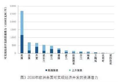 在基準情景下,裝機主要來自于北海周邊國家,包括英國、丹麥、荷蘭、德國和法國等。而在上升情景下,愛爾蘭、波蘭、拉脫維亞以及立陶宛也會有新增裝機。