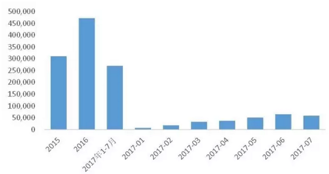 圖5:2015年–2017年前7個月我國新能源汽車產(chǎn)量