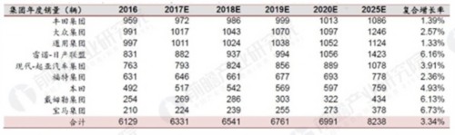 十大汽車集團2016年汽車總銷量6129萬輛,而2016年新能源汽車銷量為30.7萬輛,總體新能源汽車滲透率僅為0.6%,相對于2025年15-25%的目標有巨大增長空間。即便按照去年總銷量計算,到2025年新能源汽車空間高達900-1500萬輛,無疑將成為十大汽車集團的未來核心增量。