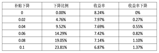 若需維持當前8.24%的收益率,則建設(shè)成本需變化如下表二: