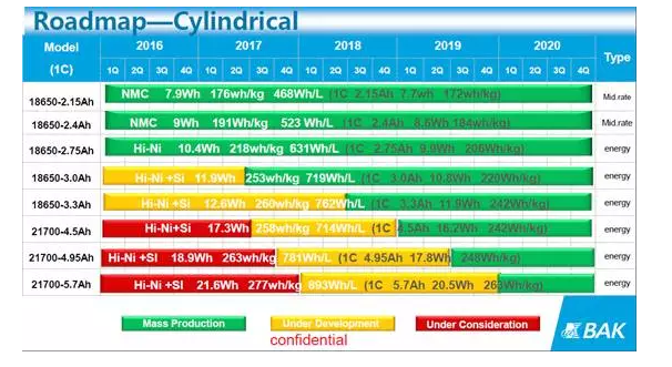 以下是比克動(dòng)力電池產(chǎn)品技術(shù)及能量密度路線圖: