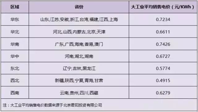 3、 東北、西北、西南地區(qū)大工業(yè)平均銷售電價低于0.65元/千瓦時,影響項目現(xiàn)金流,建議降低電價打折折扣,并找電價較高項目進行投資;