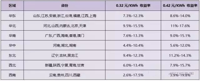 5、 華東、華北、華南地區(qū)收益率較好,可選擇用電電價高,光照好的區(qū)域著重開發(fā);