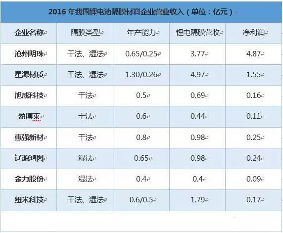 數(shù)據(jù)顯示,2016年干法單拉產(chǎn)量4.3億平方米,同比增長95%,但總體放量企業(yè)主要來自一線產(chǎn)商,如:星源材質(zhì)、滄州明珠。