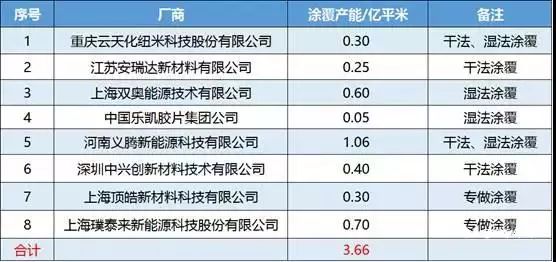 根據(jù)公開數(shù)據(jù)統(tǒng)計,我國目前大約有8家企業(yè)在量產(chǎn)涂覆隔膜,涂覆產(chǎn)能超過3.5億平米。