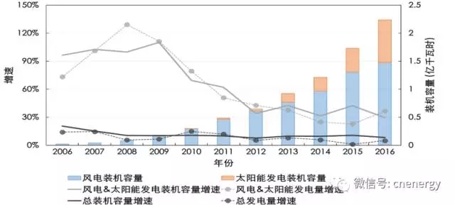中國風(fēng)電、太陽能發(fā)電裝機(jī)及發(fā)電量增速情況(數(shù)據(jù)來源:中電聯(lián))
