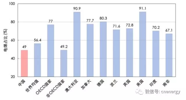 世界部分國家和地區(qū)電煤比重