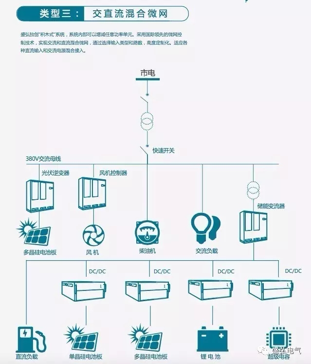 自2012年以來,盛弘電氣儲能PCS已積累了多個微電網項目應用經驗,并形成了針對不同類型微電網的解決方案,包括交流微電網、直流微電網及交直流混合微電網。這種解決方案上的廣泛覆蓋性首先源于產品模塊化設計所帶來的靈活性,就像搭建積木一樣,針對儲能項目的具體需求,僅通過內部功率模塊的增減,盛弘電氣PCS就能適配幾乎所有應用場景。