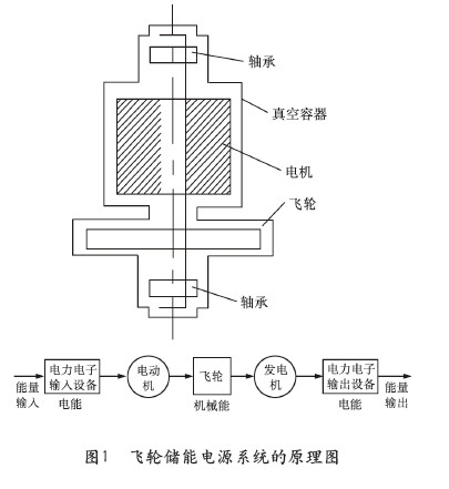 飛輪儲(chǔ)能電源系統(tǒng)主要由以下三部分組成:飛輪、電機(jī)和軸承,整個(gè)系統(tǒng)置于真空容器內(nèi)。飛輪儲(chǔ)能電源系統(tǒng)中的電機(jī),既是電動(dòng)機(jī)也是發(fā)電機(jī)。